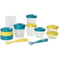 Description Pots de conservation. Facilité de rangement : pots empilables et clipsables latéralement. Pots et couvercles empilables : gain de place. Plus cuillère ergonomique d'apprentissage 1er âge. Embout silicone ultra souple - |