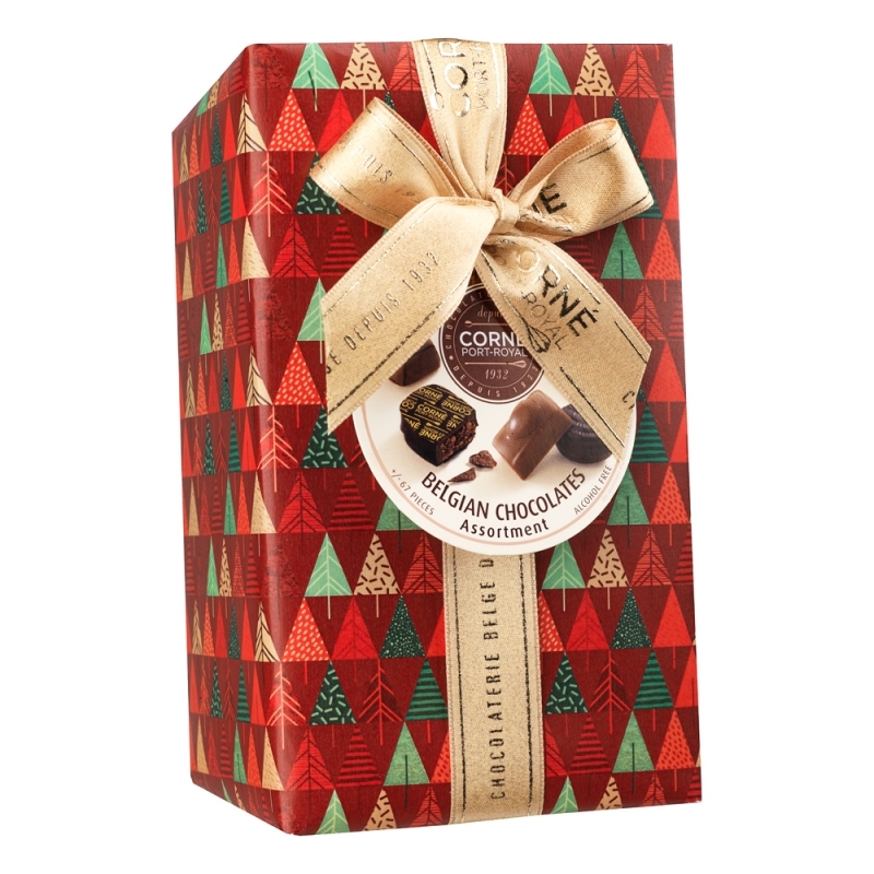 Description Ballotin 67 chocolats assortis SANS crème et SANS ALCOOL Papier Noël et ruban |