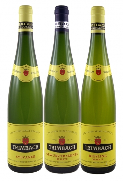 Description 1 Sylvaner domaine Trimbach 2016, 1 Gewurztraminer Réserve domaine Trimbach 2013, 1 Riesling Réserve domaine Trimbach 2016/17. Un des porte-drapeau du vignoble alsacien, ce domaine se caractérise par des vins blancs puissants, structurés et aptes à la garde. |