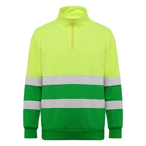 Description Sweat-shirt haute visibilité avec fermeture éclair et encolure haute avec mentonnière et tirette. Couverture de couture renforcée à l'intérieur du cou. Bandes réfléchissantes horizontales sur le torse et les manches. Maille cote 1x1 aux poignets et bas.65% polyester / 35% coton, molleton gratté, 280 g/m²..Etiquette détachable.· Certification UE selon les normes : EN ISO 13688 : 2013 ET EN ISO 20471 : 2013 / A1 : 2016.· Classe II |