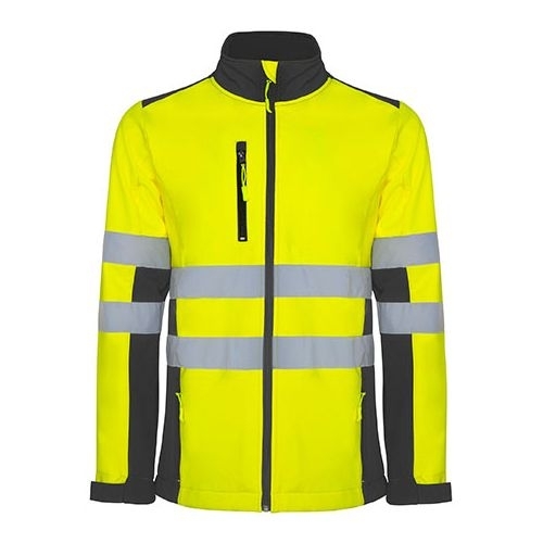 Description Soft shell bi-couleur haute visibilité.1.- Bandes réfléchissantes en torse et manches.2.- Col montant, fermeture éclair centrale.3.- Poignets ajustables avec velcro.4.- Ceinture avec gomme élastique et curseur pour ajustement.5.- Trois poches extérieures.Deux couches. Exterieur : 92% polyester / 8% élasthanne. Interieur : 100% polyester micropolaire, 320 g/m².*Certification CE selon les normes: EN ISO 13688:2013 Y EN ISO 20471:2013/A1:2016.*Clase II.*Haute visibilité.*Modèle résistant a l'eau.*Modèle coupe-vent.[61cm/80cm] |