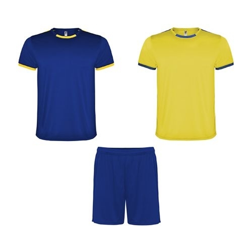 Description Kit de sport unisex composé de 2 t-shirts + 1 short.1.- Manches courtes avec liseré large en contraste.2.- La couleur du deuxième t-shirt est l'inverse du premier.3.- Col rond avec liseré bi-couleur et bande de propreté renforcée à l'intérieur.4.- Pantalon avec ceinture élastique avec cordon intérieur de la même tonalité et point arrière de sécurité.100% polyester, 140 g/m².*Kit sans chaussette.*Etiquette détachable.*Pack plusieurs pièces.*Disponible en tailles enfants.*Durée dans le catalogue 3 ans.[46cm/62cm]·[32cm/41cm] |
