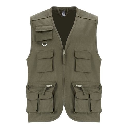 Description Gilet de travail multi-poches:1. Zip central avec tireur.2. Col V.3. Trois poches sur le torse avec rabat et fermeture en velcro.4. Deux poches latérales avec zip et tireur, avec deux poches superposé avec rabat et fermeture velcro.5. Deux poches arrière avec rabat et fermeture velcro.6. Cou, emmanchure et ourlet avec passepoil. 65% polyester / 35% coton, 200 g/m² .* Etiquette détachable.[52cm/68cm] |