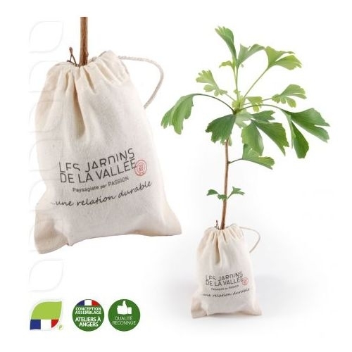 << Revenir au catalogue Liberty Gift Luxe > Eco - Ethique - Accessoires > Divers Petit plant de ginkgo biloba en sac coton.
