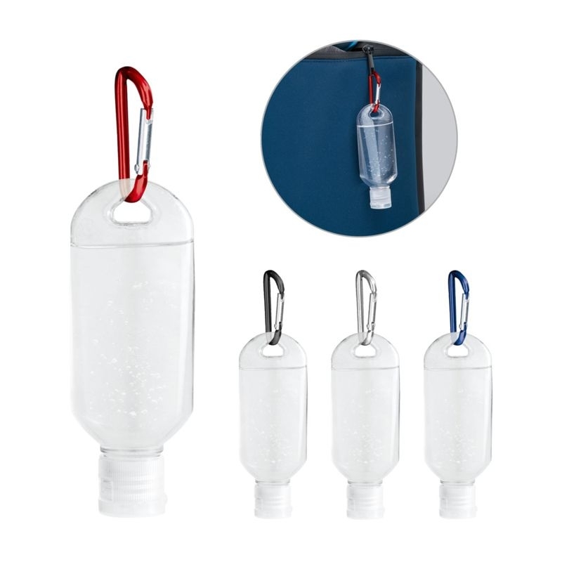 Description Gel désinfectant en bouteille PETG de 50 ml avec bouchon flip top et mousqueton. Formule avec de l'alcool à 68%. Il s'agit d'un produit cosmétique. Pratique à transporter et à utiliser partout.45 x 120 mmPETGCertificats : MSDS, CPNP 3426471Emballage : Sachet - Emballage après impression : Sans sachet individuelMarquage par défaut : Gourde - Corps (Tampographie - 20 x 50). |
