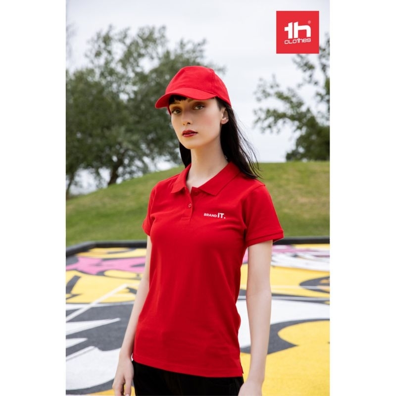 Polo pour femme à  manches courtes en tricot piqué 100% coton (240 g/m²). Coupe régulière avec col et manches en Rib et ruban de renfort sur le col en tricot piqué. Le col est renforcé par 2 boutons de couleur (un bouton de rechange est inséré dans la couture intérieure). Pièce coupée et cousue avec de petites ouvertures latérales sur le bas du polo. étiquette visible et amovibleTailles: S, M, L, XL, XXLcoton.