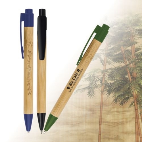 Stylo bille en fibre de bambou, encre bleue.Stylo bille en fibre de bambou, encre bleueLes prix comprennent un marquage en 1 couleur ou une gravure au laser. Diam. 11