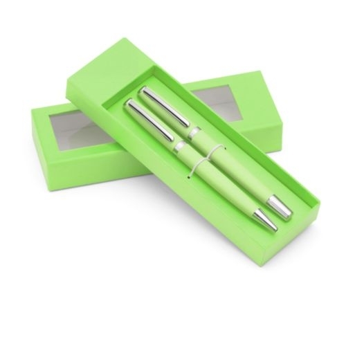Description Set à écrire COLORADO se compose d'un stylo et un stylo à bille emballés dans une boîte en carton, dont la couleur est assortie à l'ensemble. Les articles de papeterie faits en métal, un étui en carton fort fini d'un papier en couleurs. Son trait caractéristique - ce sont des couleurs vives, à la mode. Le stylo avec un mécanisme de type twist. La cartouche de stylo et de stylo à bille est bleu. Long. 185 H. 27 Larg. 60 |