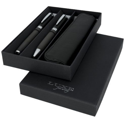 << Revenir au catalogue Liberty Gift Luxe > Écriture > Set d'écriture Parure de stylos bille et roller avec étui Carbon