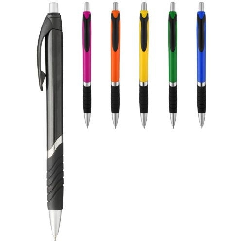 Stylo à bille avec bouton poussoir et zone de préhension caoutchouc.Plastique ABSScreenround - autour - 35 x 10 mm - couleurs max : 1. Diam. 10 Long. 143