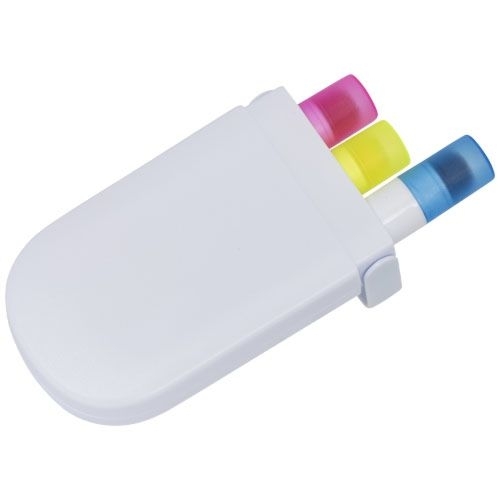 Description Le boîtier en plastique blanc comprend trois gels surligneurs de couleurs différentes.Plastique ABSSérigraphie - Devant - 30 x 55 mm - couleurs max : 1. H. 53 Larg. 105 Long. 15 |