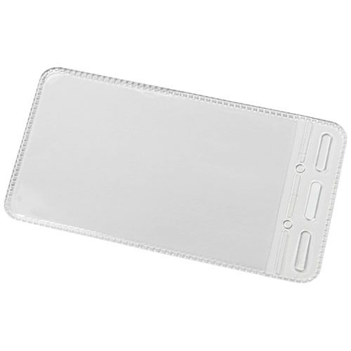 Description Porte-badge transparent format portrait avec ouvertures pour attache à un tour de cou ou à un clip à bande déroulante.PVC - - - couleurs max : . Long. 110 Larg. 65 H. 1 |