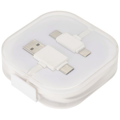 Description Ce cble de chargement 4 en 1 comporte 2 prises type C, 1 prise USB type A et 1 prise mini USB et lightning. Il permet à la fois le transfert de données et le chargement. La prise mini USB et lightning permet de charger à la fois des produits Apple et des produits fonctionnant sous Android, en retournant la prise en fonction de l'appareil à charger.Plastique ABSTampographie - Boîte - 50 x 50 mm - couleurs max : 4. Larg. 70 H. 70 Long. 18 |