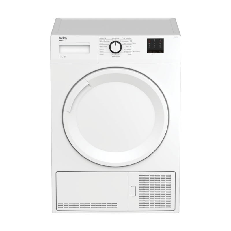 Description Sèche-Linge Frontal à Condensation Sèche-linge Condenseur 10 kg - Electronique - Départ différé 3-6-9 h eures - Tambour inox 118 L - Porte pleine. Sèche-linge frontal - 15 programmes dont Sport, Délicat et BabyProtect : BabyProtect est un programme qui s |