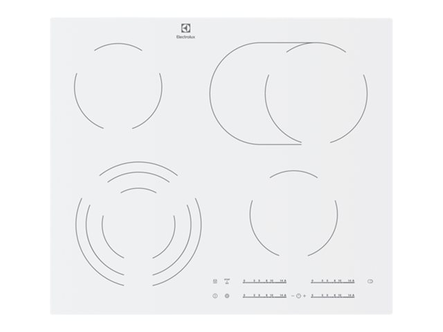 Description Table Vitrocéramique ELECTROLUX EHF6547IW1 PLAQUE DE CUISSON VITROC?RAMIQUE - 4 FOYERS - 7100W - L59CM X P52CM - BLANC |