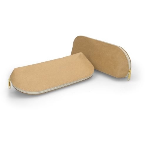 Description Trousse en KraftFermeture par zip en métal coloris métalDimensions standards: 200x90x45mmImpression 1 couleur 1 face compris (Hors FT) |