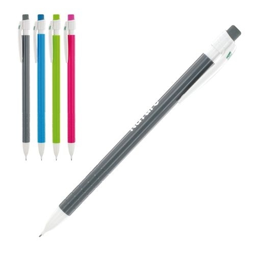 Description Le porte-mine s'habille de couleur flashy pour mettre du fun dans les trousses et sur les bureaux ! Mine de 0,7 mm. Coloris corps bleu, magenta, vert, gris attributs blancs. Marquage sur le corps en 1 couleur, blanc conseillé et par défaut.  |