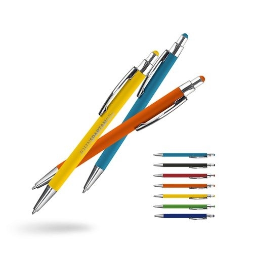 Description Un toucher doux et un design tout en finesse pour ce stylo-stylet alu aux couleurs franches. Stylo bille avec stylet coordonné, corps et clip métal, écriture noire, pointe de 1,0 mm. Avec marquage, livré en étui suédine ART02. Option avec supplément : Etui RIO16 à la place de l'ART02. Marquage en gravure laser.ALUMINIUM Diam. 8.3 |