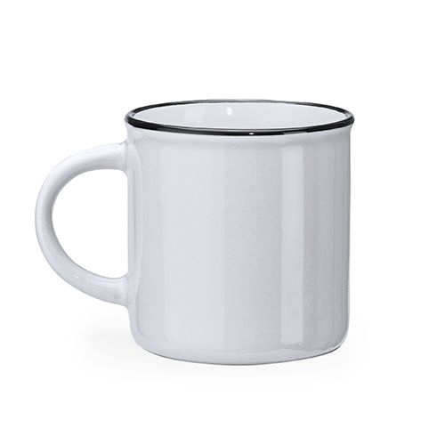 Description Tasse céramique style rétro avec poignée ronde. 300ml. Présentation en boîte blanche.Mug en céramiqueInformation de marquage:F(4)8,7cm/8,5cm |