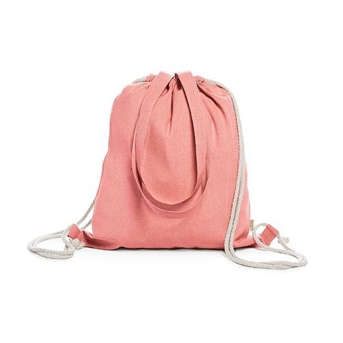 Description Sac à dos 100% coton recyclé avec cordon de serrage de 140 g/m² en finition marbrée avec anses assorties de 70 cm de long et lacets de couleur naturelle.Polyester et coton recyclé 140 g/m².38cm/42cm |