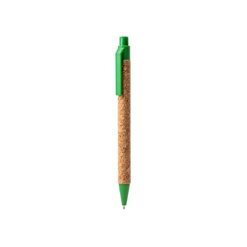 Description Stylo ligne nature avec corps en liège. Pointe, bouton poussoir et clip en fibre de blé. Encre bleue.Liège et fibre de blé.14cm/1cm |