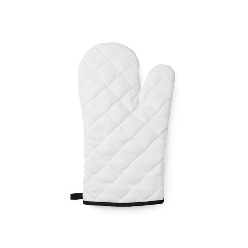 Description Gant de cuisine en polyester. Fini en blanc avec des bords colorés et du ruban de suspension. Visage lisse idéal pour la sublimation. Mitaine idéale pour un usage quotidien.Polyester.30,5cm/19cm |