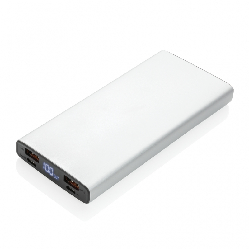 Description Powerbank 10.000 mAh en aluminium 18W est livré avec une sortie ultra rapide de type C et une sortie QC 3.0 USB A. Charge votre appareil jusqu'à 5 fois. Avec des voyants de batterie pour indiquer le niveau d'énergie restant. Entrée micro USB 5V / 2A; Entrée de type C 5V / 3A, 9V / 2A, 12V / 1,5A; Sortie USB 5V / 2.1A; Sortie QC 3.0 5V / 3A, 9V / 2A, 12V / 1,5A; Sortie Type-C 5V / 3A, 9V / 2A, 12V / 1.5A 18W max (PD 3.0); Sortie USB-A: 5V / 3A, 9V / 2A, 12V / 1.5A 18W max (PD 3.0). Câble micro USB en TPE sans PVC inclus. |