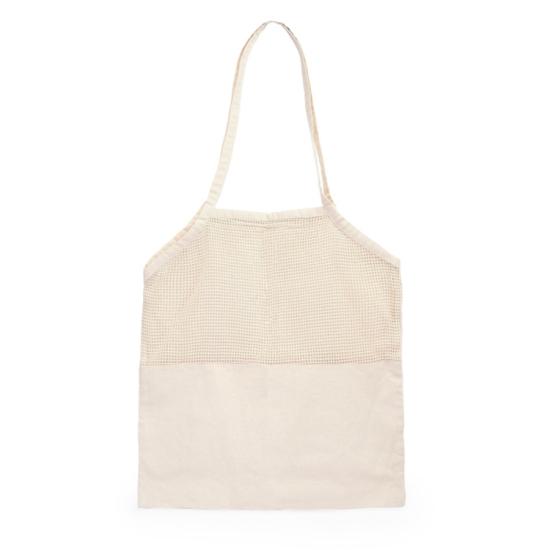 Description Sac pour fruits ligne écologique 100% coton 180 g/m². Couleur naturelle. Anses de 60 cm. La moitié du sac en matière souple et la moitié en maille. |
