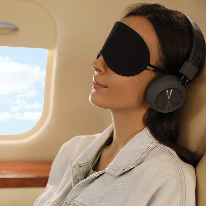 Description Masque fabriqué en polyester idéal pour se reposer lors des voyages. Ample zone de marquage. |