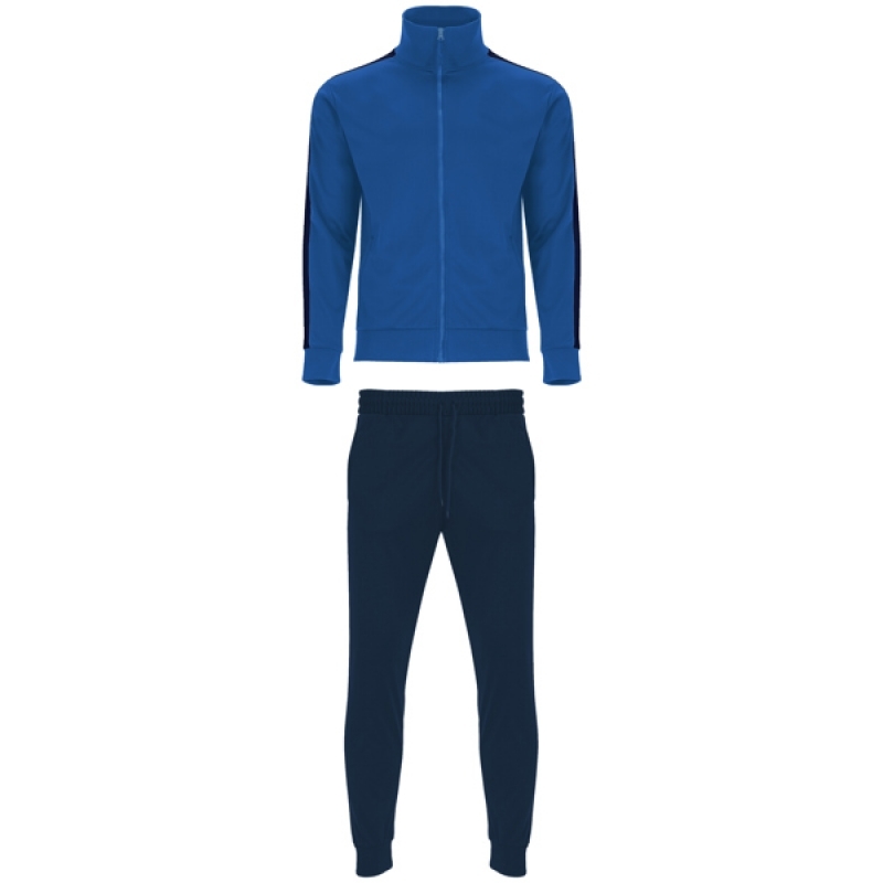 Description Survêtement composé d´une veste et un pantalon:1.Col haut avec bande de propreté intérieur au ton.2. Col, poignets et bas en côte 1x1. 3. Zip central au ton avec tireur.4. Poches laterales des veste avec zip.5. Panneau latérale en contraste.6.Pantalon avec ceinture élastique et cordon de serrage.7. Deux poches laterales.8.Poche arrière avec zip.9. Bas avec élastique en côte 1x1. |