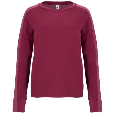 Description Sweat-shirt pour femme, combiné avec deux tissus et deux couleurs. Col, demi poignet et bas du dos en côte 2x1. Poignets coupe asymétrique. Bas avec ouvertures latérales et dos plus long que le devant. |