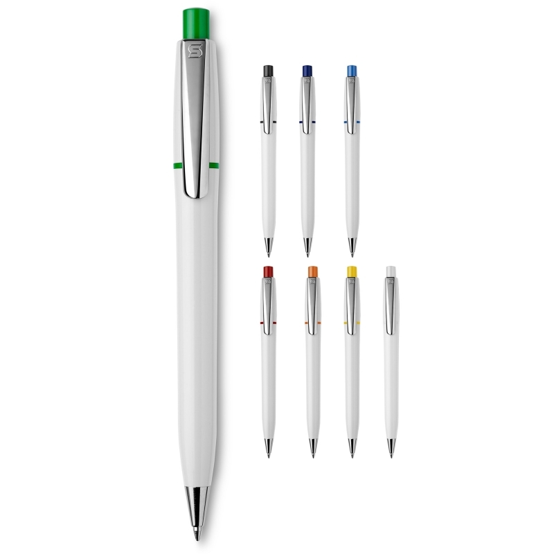 Description Le très élégant stylo bille Semyr de couleur opaque avec anneau coloré, poussoir et avec clip chromé. Le stylo est équipé avec une cartouche Jumbo pouvant écrire jusqu’à 4.5 km. Le stylo est fabriqué en Europe en plastique ABS. À partir de 5.000 pièces, vous pouvez choisir vos propres couleurs. |