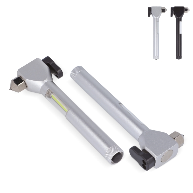 Description Marteau de scours, équipé d’une pointe acérée pour briser une vitre de voiture en cas d’accident, d’un coupe ceinture, d’un aimant et d’une lampe COB. Grace à cet aimant vous aurez les mains libres lorsque vous voudrez utiliser la lampe et en même temps bricoler. |