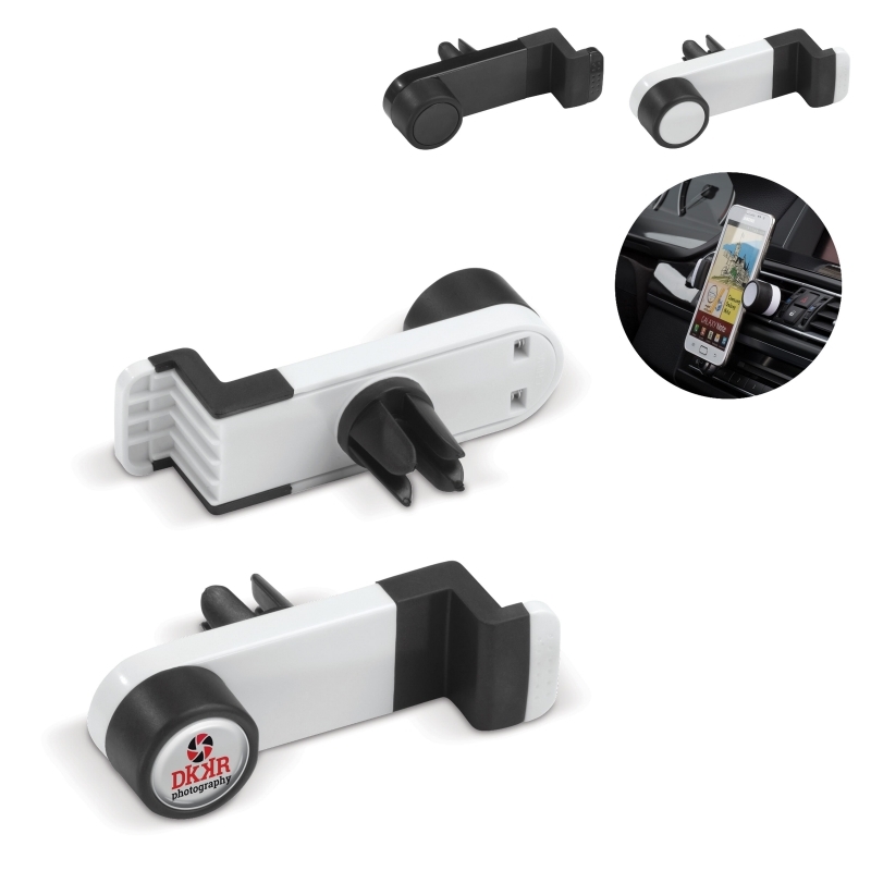 Description Support de téléphone avec ressort. De cette manière, vous transformez votre ventilateur de voiture en support de téléphone en un tour de main. |