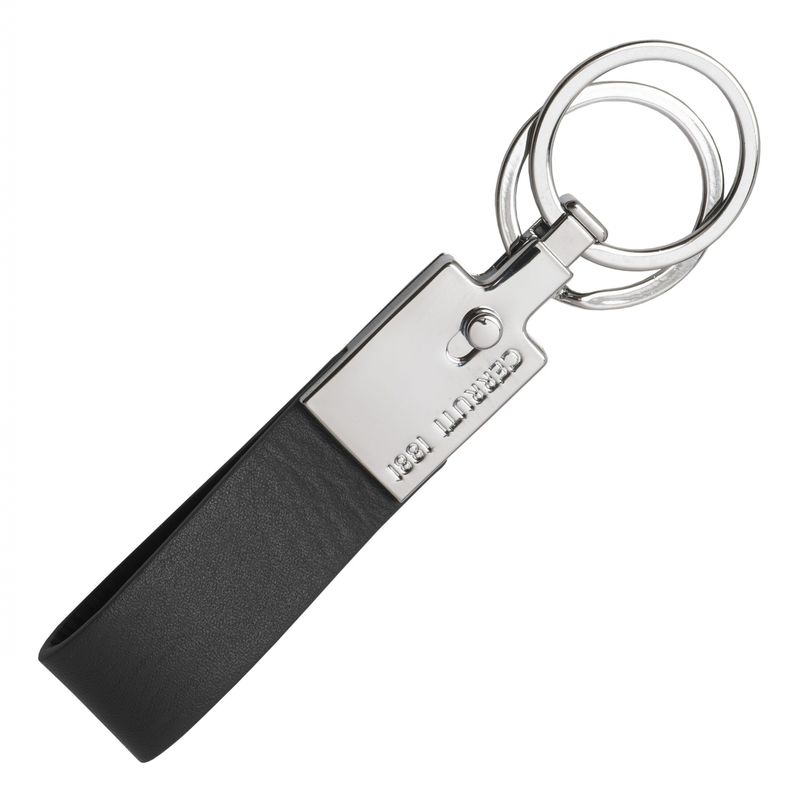 Description Composé d'un cuir lisse noir soigneusement sélectionné, attaché à une structure chromée brillante contenant deux anneaux métalliques, le porte clés Zoom de Cerruti 1881 est classique et élégant. |