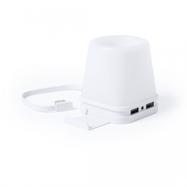 Description Original Porte-Crayons avec port USB intégré. Rétro-éclairé par lumière LED, avec 2 positions d´éclairage et corps en couleur blanche élégante pour faciliter le marquage. Comprend 4 ports USB 2.0. Présenté dans une boîte individuelle. |
