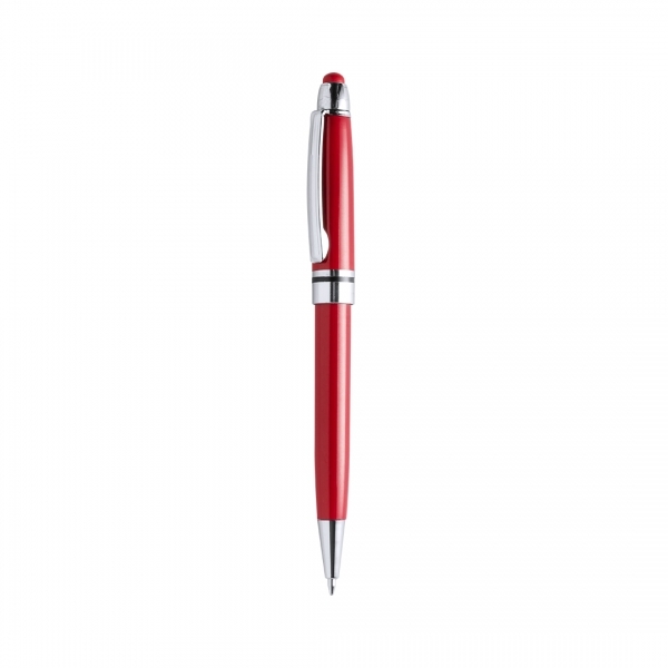 Stylo bille stylet en ABS de couleur, avec de couleurs vives et stylet assorti. Avec détails chromés et clip en métal. Cartouche jumbo et encre bleue. 500 mètres d´écriture 1 mm.