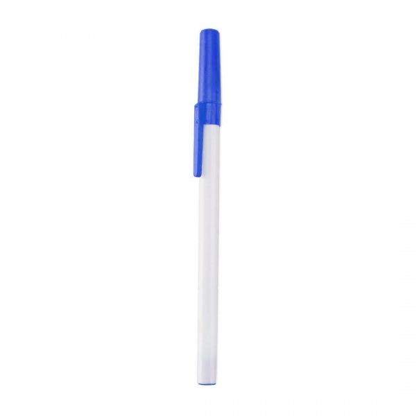 Description Stylo avec capuchon au design bicolore classique, avec corps lisse blanc translucide et accessoires en coloris vifs. Encre bleue. |