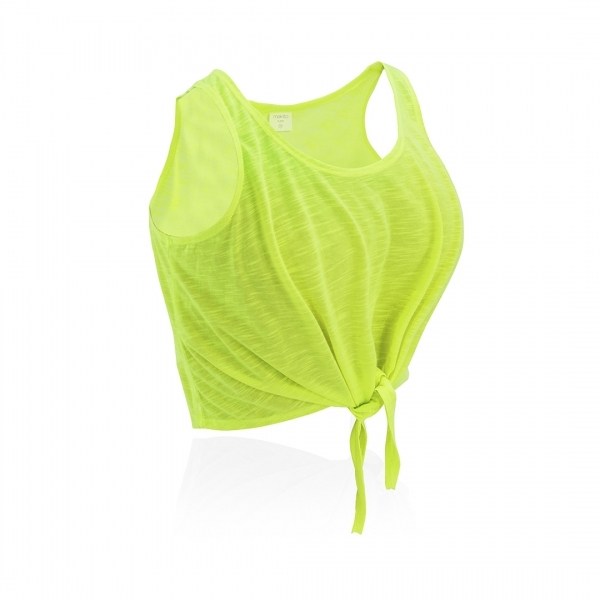 Description T-shirt fille en polyester doux 130g/m2. Avec un design à tirant et une fermeture à nœud sur le devant. Disponible en blanc et dans une large gamme de couleurs fluorescentes vives. Tailles S, M, L. |