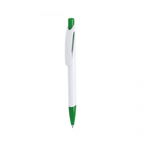 Description Stylo à poussoir bicolore avec accessoires en couleurs vives et pointe assortie, corps blanc. Clip courbé original. Encre bleue. |