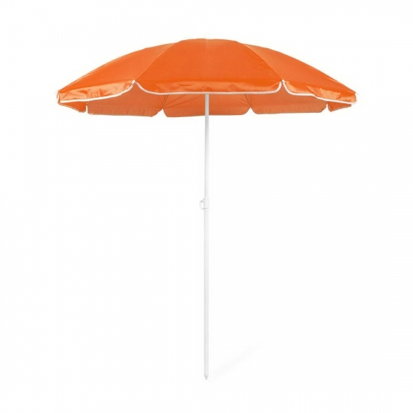 Description Parasol à 8 panneaux en nylon résistant décliné en plusieurs couleurs vives. Diamètre de 150cm. Jupes latérales gansées, tubes métalliques blancs réglables en hauteur. Présenté dans un fourreau en nylon avec bandoulière. |