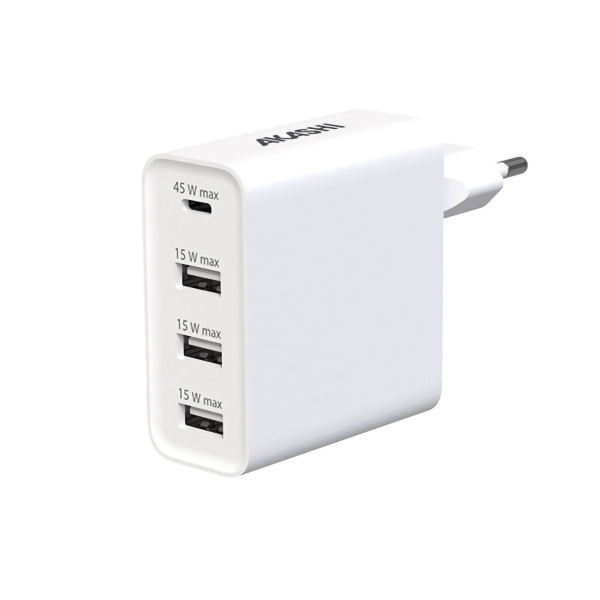Description Chargeur eco secteur intelligent 60W 6A Charge Rapide: USB Type-C + 3 USB-A - 1 port USB Type-C 60W Power Delivery et 3 ports USB-A (6A) - idéal pour charger votre macbook, notebook, tablette et Smartphone - blanc en matériaux recyclés et recyclables : CERTIFIE GRS - GLOBAL RECYCLED STANDARD |