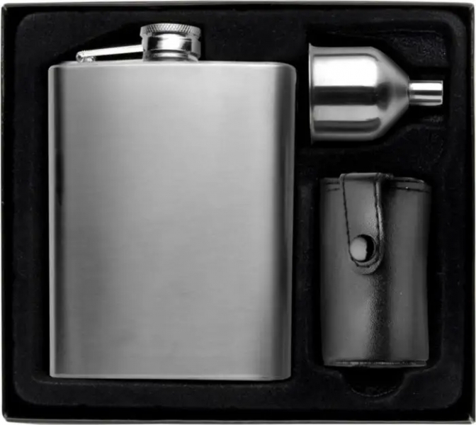 Description Boîte cadeau contenant une flasque d'une contenance 22 cl, 4 verres en acier inoxydable et un entonNoir. |