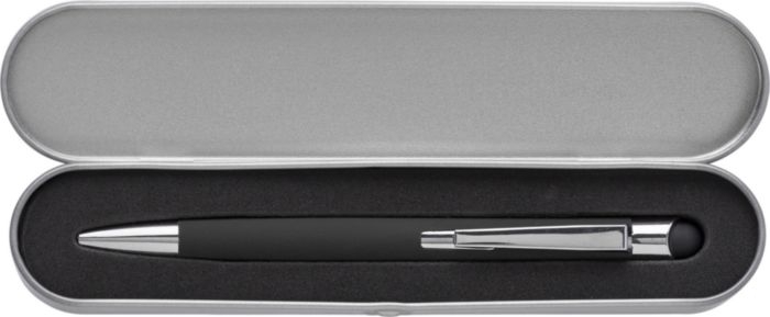 Description Stylo bille en aluminium avec toucher gomme et embout pour écran tactile dans un écrin en aluminium, mine Noire. Fourni avec une encre d’origine allemande Dokumental. |