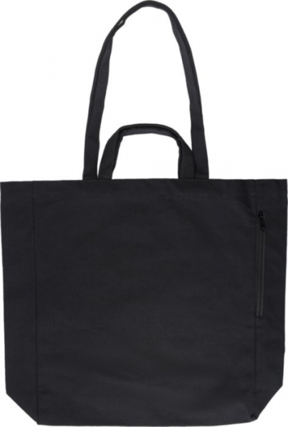 Description Sac shopping 350 g/m² en coton recyclé avec anses courtes et longues, poche frontale zippée. |