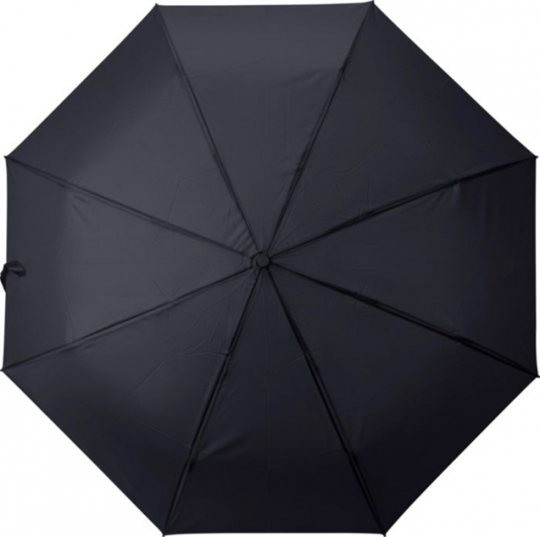 Description Parapluie pliable en polyester pongée 190T avec fermeture et ouverture manuelles, mât et baleines en métal, manche en bambou, livré avec une housse. |