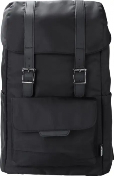 Description Sac à dos porte-ordinateur de 15'' déperlant avec rabat en polyester twill rPET 290T avec fermeture aimantée et lacet avec sangle porte-trolley. |
