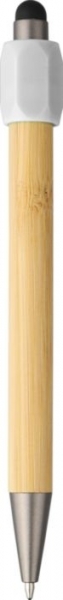 Description Stylo bille en bambou avec fonction spinner en ABS recyclé et embout pour écran tactile, mine Bleue d'une longueur de 800 mètres. |