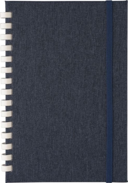 Description Carnet A5 en rPET avec couverture rigide et fermeture élastique. Il est doté d’une spirale de 15 anneaux en carton Blanc, d’un marque-page et de 80 feuilles de papier ligné de 70 g/m2. Logo rPET au dos. Emballé uniquement dans du papier de soie. |