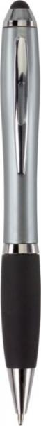 Description Stylo bille en plastique avec embase en gomme et embout pour écran tactile, mine Noire. |